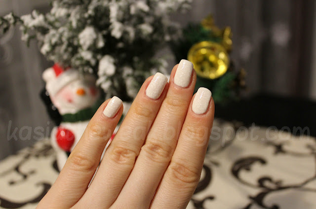 Pearl Drop to biała baza z zatopionymi białymi drobinkami "soli". Do pełnego krycia potrzebne są 3 warstwy i tyle widzicie na zdjęciach, aczkolwiek dwie wcale nie wyglądały gorzej, a mam wrażenie, że dołożenie trzeciej dało bardziej efekt "kanapki" zmniejszając lekko widoczność drobinek.