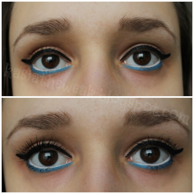 na górze "gołe" rzęsy, na dole pomalowane