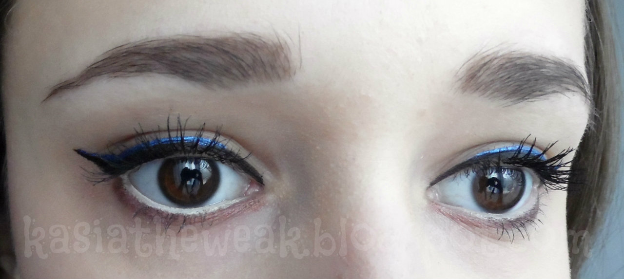 Dziś pokażę Wam kolejny makijaż zmalowany paletką MUA Undressed. Poprzedni - TUTAJ. Tym razem postawiłam na niebieski odcień, taki dżinsowy (chociaż na oku wyszedł jak szary). Inspirowałam się tym makijażem wykonanym przez Natalię, tylko u mnie wyszło jakoś delikatniej, mimo użycia bazy pod cienie.
